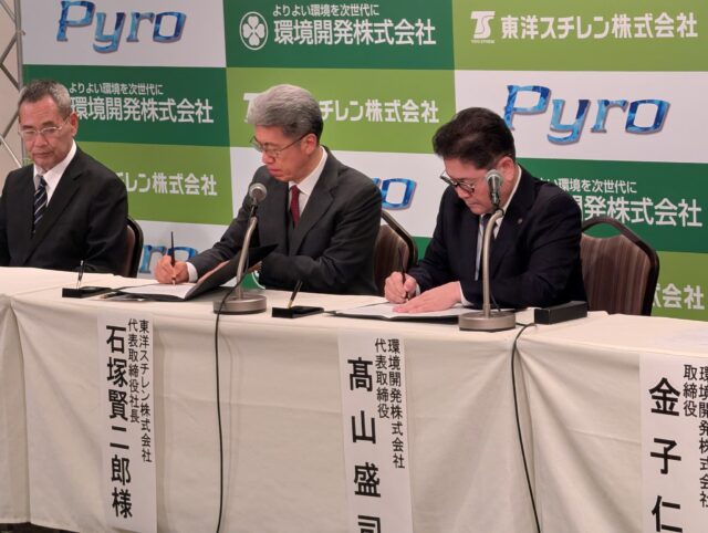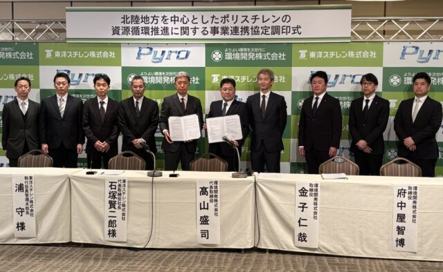 本協定は、両社が密接に連携し、使用済みポリスチレン製品を回収し、ケミカルリサイクル技術により新品同様の再生樹脂へと再資源化する取り組みを推進するものです。従来は再利用が難しかった素材についても循環を可能とし、資源の有効活用と環境負荷低減を目指してまいります。